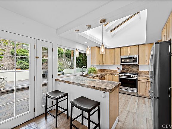 Welcome to 25202 Hugo Road, a stunning property nestled in the prestigious city of Laguna Niguel. This exquisite home boasts luxury, style, and has been thoughtfully and tastefully remodeled. Situated on a meticulously landscaped lot, this residence offers the perfect balance of privacy and convenience. Step inside and be greeted by an open and spacious floor plan, flooded with natural light. The main living areas feature high ceilings, elegant finishes, and designer touches. The kitchen is a chef's dream, equipped with deep farm sink, stunning granite, top-of-the-line appliances and custom cabinetry. The expansive master suite is a private sanctuary, complete with a gleaming white stand shower and counter tops. Additional bedrooms are generously sized, providing comfort and flexibility for family and guests. The backyard oasis is an entertainer's paradise, featuring newly laid pavers and lush landscaping. The home is finished with luxury vinyl plank flooring throughout, dual pane windows, cozy fireplace in living room, separate laundry room and attached two car garage. Located in a desirable neighborhood, this residence offers easy access to renowned schools, shopping centers, dining options, and recreational amenities. Interior upgrades include new paint throughout, reglazed tile in bathrooms, deep farmhouse sink in kitchen, recessed lighting, water purification system, new doors and windows in primary bedroom, kitchen and guest bedroom, newer outlets and switches, newer modern hardware on interior doors and cabinets, ADT security system with smart digital thermostat with controls and front door lock. Exterior improvements include landscaping with pavers, full electrical laid for jacuzzi and outdoor lighting, 300 feet of new drainage systems, rebuilding the retaining wall, chain link fence around perimeter, rain gutter installation and roof and solar panel cleaning. Garage upgrades include epoxy flooring and electric car charger. Full electrical already installed in the backyard for a jacuzzi and outdoor lighting Previous inspection items corrected include bringing electrical and plumbing to code, safety overflow switch and gas line connector, termite fumigation of property, chimney repairs.
