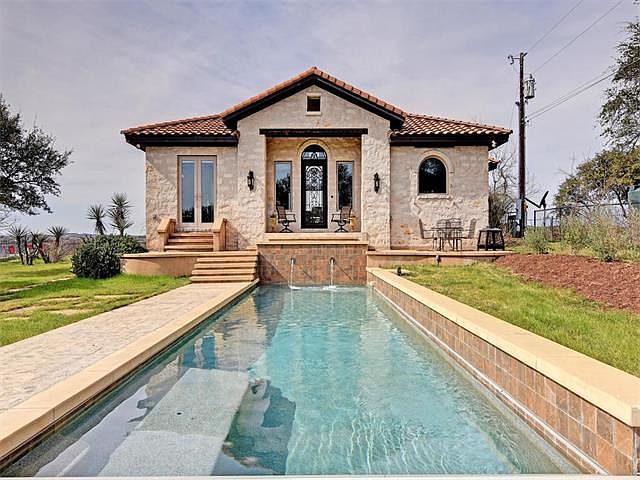 Lakefront custom built home 2012 w/ incredible views and separate guest house 2003 (2/1 w/ kitchen & laundry). Private adjustable boat dock w/ power. Relax in the saltwater lap pool 2012. Main home features 12' ceilings in living area, hardwood floor, custom cabinets, stainless steel appliances, granite countertops, walk-in showers, clay tile roofs, limestone exteriors, large covered porch, & automatic sunshade. New water well pump-2015, septic tank-2012, wrought iron fence-2010. Neighborhood boat launch.