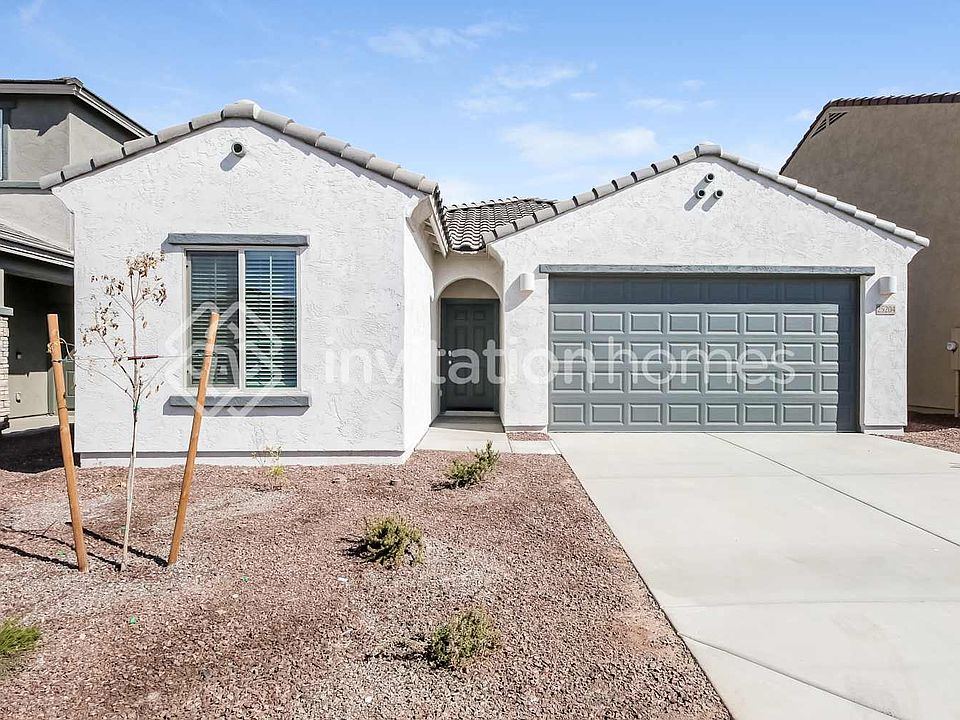 Home Features and Amenities: Air Conditioning, Fenced Yard, Garage, Granite Countertops, Kitchen Island, Long Lease Terms, New Construction, Open Floorplan, Patio, Pet Friendly, Primary Bedroom on Main, Recessed Lighting, Single Story House, Smart Home, Stainless Steel Appliances, Tile, W/D Hookups, and professionally managed by Invitation Homes.