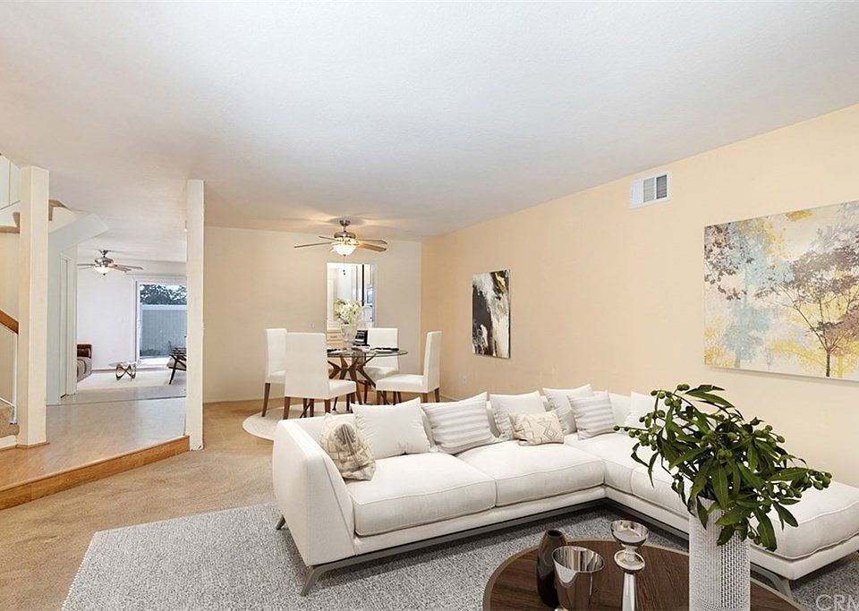 A spacious condo, over 1,700 sqft! Upon entering, this home offers an open floor plan with a large living room leading to the dining room. The living room has a welcoming beautiful brick fireplace. The kitchen features plenty of cabinet space, bar seating, & enough room for a kitchenette for casual dining that is open to the family room. From the family room, you will be lead out to the open back patio where you are able to enjoy the beautiful space for gardening and relaxation with friends or family. Upstairs, find two secondary rooms with a bathroom and tub. The master bedroom suite is oversized & the perfect relaxation spot. The master suite offers a step-in shower, dual sinks, & a walk-in closet. Also, inside the home, there is a separate room for the washer and dryer. This community offers a pool & spa with low maintenance to the homeowner. This absolutely fantastic family home is located close to the 133, 5 & 405 freeways. There is no Mello Roos & low HOA! Lake Forest is truly the hidden gem of So Orange Co. with its award-winning schools, feeling of community, walking/hiking trails, awesome skatepark & beautiful new sports park! Let your family be the one that gets to experience this awesome home! (Pictures of the home are virtually staged.)