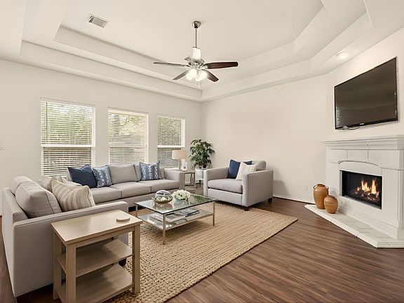 Welcome to 25207 Oak Star Dr, a beautifully updated, water-view home in the peaceful, gated community of Oakmont Village. From the moment you arrive, the tranquil pond views and landscaped surroundings set the tone for a home that blends comfort, elegance, and serenity. Inside, the open family room with its cozy gas fireplace flows seamlessly into a tastefully updated kitchen featuring stunning quartz countertops, a breakfast bar, built-in workspace, and a spacious walk-in pantry. Natural light fills each room, including the private study and the quiet retreat overlooking the backyard, complete with a luxurious bath and expansive closet. A versatile bonus room upstairs adds even more space for leisure or creativity. Step outside to a long, covered patio and a lovingly maintained backyard designed for peaceful moments or lively gatherings. With convenient access to Creekside Village dining and shopping, this is a rare opportunity to enjoy refined living in a truly inviting setting.