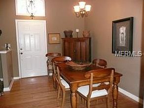 If you are looking for a home that speaks warmth and a tranquil environment, search no more! Beautiful attention to detail ~ custom shutters, wood blinds, Honeycomb custom sliding shade on family room sliders, double pane windows encased with decorative wood trim, striking stainless steel appliances, rich hard wood flooring with transition to designer tile with embellishments for added interest. Newer A/C system (large capacity) for cost effective heating/cooling. You will enjoy entertaining in your formal living and dining areas, open kitchen to welcoming family room with sliders that lead out to a covered lanai for outdoor enjoyment. Fenced in yard provides privacy as well as a great environment area for play. Community offers pool, clubhouse, basketball and volleyball areas all set in a picturesque, park like setting in the center of the community. Stagecoach allows you to be within minutes from major highways, shopping, recreation, schools and more. Must See. You will want to make this house your home!