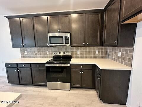 This GEM ready NOW is sure to impress! Gorgeous kitchen has beautiful quartz counter tops, 42'' flagstone cabinets with 3'' angled crown molding, 4''x4'' brushed tile backsplash, single bowl sink at large island with breakfast bar! Stainless steel GE appliances including refrigerator. 9' ceilings, separate pantry, 8' interior doors, energy efficient, 8' garage door, Smart Home too. Spacious bedrooms, split floor plan offers privacy, great closet space. Dual sinks in primary bathroom, second bath is huge, quartz counters in bathrooms. Beautiful, staggered, plank style 6''x36'' tile throughout except bedrooms and closets. Blinds, washer, dryer included. Great incentives!