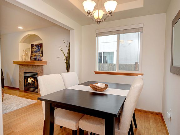 Model Home Look Alike! Immaculate home has everything! Bamboo hdwd flrs, formal dining area opens to beautiful liv rm w/cozy gas F/P & wired for surround snd. Liv, Kit, eating area look out onto the fantastic entertainment deck in private back yd. Eating area & breakfast bar lead you to large, bright & updated kitchen! Tons of counter space/cabinetry ~ including a pantry! 3 very spacious bedrooms upstairs including gorgeous Master w/vaulted ceilings. NEW paint/carpet too! Super EZ commute to anywhere! *** Offers are due to Listing Agent by 9:30 AM Thursday May 19th***