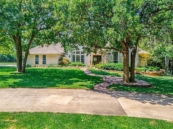 Nestled on 2.97 ac of luscious Edmond land, this elegant residence exudes charm and sophistication, the home’s design & finishes reflect quality. This fully remodeled property offers the ultimate in luxury living, boasting an array of top-tier amenities. The one-level layout is ideal w/ a split floorplan and spacious open living. New windows throughout flood the interiors w/ abundant natural light. Wood floors, quartz & solid wood doors grace every corner. The dedicated study offers extensive shelving & picturesque views of the circle drive, manicured front lawn and native oaks. A large stone fireplace anchors the open living room, boasting generous windows framing views of the private outdoor oasis. The kitchen is the heart of the home w/ an oversized island, SS appliances, double-oven commercial style gas range, walk-in pantry, and yet more custom built ins. The kitchen is open to the dining area that provides access to the covered patio. The primary suite enjoys oversized windows, access to the outdoors and is complete w/ a spa-like ensuite bathroom featuring soaking tub, double vanity, Carrera marble walk-in shower & walk-in closet loaded w/ built ins. On the opposite side of the residence are two add'l bedrooms w/ a jack & jill bath. With its thoughtful layout, this home effortlessly accommodates both entertaining & quiet family moments. Outside, this property offers a tranquil sanctuary, featuring 2 new pavilions & a saltwater pool. The extended manicured yard offers a 2nd new pavilion complete w/ a wood burning fireplace and tv. Too many new items to list (see full list attached) >$250k invested, incl. 20 KW Generac, low-E divided light windows (2015), roof (2015), pool equipment, $24k in 2 outdoor pavilions, new canned lighting & light fixtures, light dimmers throughout, new hot water heater & water softener (2024), custom window shades, 3-car garage epoxy floor (2024). Call for a private showing of this true gem before it's gone.