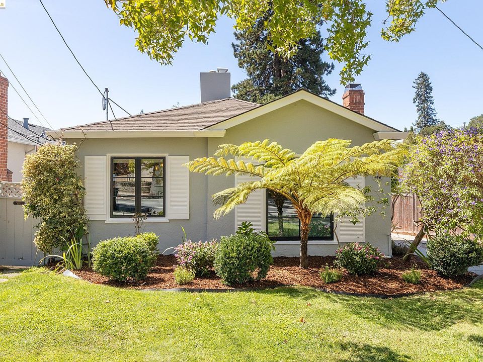 Welcome to this charming home located on one of Oakland’s most sought-after streets, where classic elegance meets modern updates. A beautifully manicured front yard complemented by a freshly painted exterior with white shutters and bold black frames, this fabulous home awaits. Inside, you'll find hardwood floors, airy living spaces, and a living room centered around a cozy gas fireplace. The adjacent designer dining room features a stylish modern light fixture and fun accent wall. The kitchen offers quartz counters, stainless steel appliances, ample cabinetry, and playful tile flooring. Two spacious, light-filled bedrooms include a main bedroom with a large built-in closet and a second bedroom with whimsy wallpaper. The modern hall bath with skylight is just lovely! A large fenced-in backyard is perfect for barbecues, gatherings and gardening, while the detached garage offers versatile options and potential. The neighborhood features tree-lined sidewalks for strolls, nearby excellent schools, shops and restaurants. Fantastic parks, hiking and biking minutes away! A truly special block with annual parties and genuine connectedness. What a wonderful place to call home! Open Sunday from 2 - 4:30pm