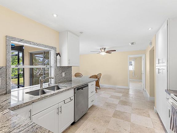 GULF ACCESS WATERFRONT home in the heart of Naples. Step in and fall in love with this 3 BR/ 2 BA beautifully maintained home. Gorgeous natural stone throughout and loaded with natural light. Updated kitchens and bathrooms. Large walk-in closet in master bedroom. Screened in lanai is spacious with access from family room and second bedroom. Tropical fruit trees on property. The backyard has room for a pool and/ or fire pit. Beautiful canal view with opportunity to build your own boat dock. Gulf access leads to the Gordon River/Naples Bay. Home did not flood and suffered no damages during Hurricane Ian. Move in ready for yourself or as a rental property with excellent income potential. Or renovate to your heart’s desire. Highly desirable friendly neighborhood with optional low fee membership to the Community Association that offers includes Boat Ramp with Gulf access, Trailer Storage, Heated Pool, Kids Playground, Tennis and Pickleball courts, Pavilion and Dog Park. Centrally located minutes away from restaurants, beaches, shopping, Downtown 5th avenue/Tin City, Mercato, & Gordon River Greenway.