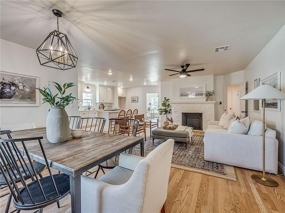 Huge price reduction. Instant equity!! Welcome to OKC’s highly coveted Cleveland Addition! This home has been completely remodeled with modern high end finishes. This open concept home features two living rooms both having fireplaces. The kitchen has level five quartz with stainless appliances, a microwave drawer, and a large island with sight lines to both living, family room, and study. The primary bedroom offers a walk-in closet and beautifully remodeled bath with double sinks, free standing tub and large shower. There are two additional bedrooms downstairs sharing a bath. The upstairs has a fourth bedroom that could be used as a bonus room, play room, or movie room. There is also an additional bathroom as well as plenty of storage with five closets two of which are cedar. The home has new windows, refurbished original hardwood floors, plumbing fixtures, lights fixtures, and much more.