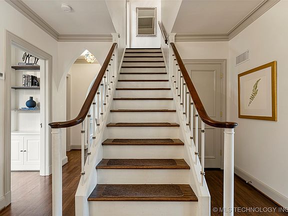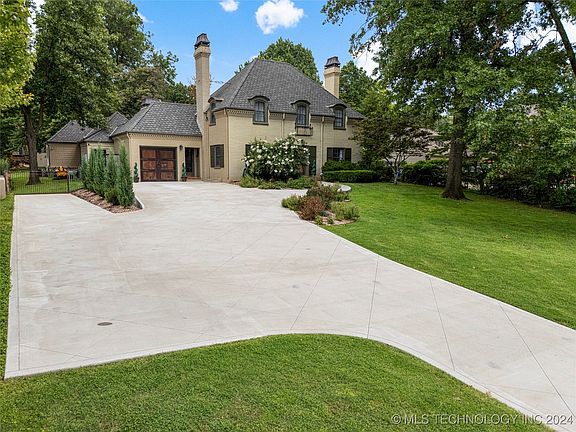 This grand French Midtown home is on a large half-acre lot. A one-of-a-kind home featuring multiple living areas, an office/library, a sunroom, kitchen with large separate butler's pantry great for baking, dining room with vaulted ceilings & beams, and a finished basement that provides a recreation area. Spacious & luxurious main suite on 1st floor with views to the large backyard and gardens. The second floor has 2 bedrooms upstairs, one with an en-suite bath and walk-in closet. The third bedroom is quite large and can easily be upgraded to add a 4th bedroom. There is also a conveniently located hall bath. Experience the expansive backyard, raised garden with an archway, & plantings of ferns & flowers. Enjoy the outdoors under a shaded gazebo, or sit in front of the fireplace. Sunroom, Butler's pantry & main suite all open to the outdoor patio through French doors. Details have been preserved. wood, brick, tile flooring, brass doorknobs, fireplaces, library shelving, crown molding & picture rails. Updates maintain the home's unique features, such as the gothic arch in hallway repeated in the island cabinetry and garden arches. Improvements to the property include luxury main suite addition with a walk-in closet, spacious bathroom, Butler's pantry, soapstone, marble, and quartzite countertops, stainless steel appliances, two new bathrooms upstairs with custom light fixtures from La Maison, new paint throughout, new & expanded driveway, decorative fencing, outdoor patio & gazebo, shutters, landscaping, and fountain. Original blueprints & photos from throughout the home's history are available. Driveway designed to park up to 9 vehicles.