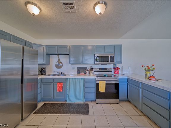 - Description: Breakfast Bar/Counter,Custom Cabinets,Pantry,Stainless Steel Appliances,Tile Countertops,Tile Flooring,Vaulted Ceiling