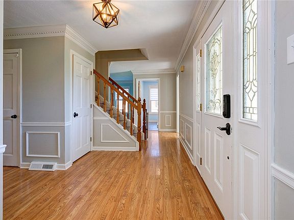 Lovingly updated home in a quiet sidewalk community in Franklin Park! Featuring an updated kitchen, new windows, insulated siding, new roof, gutters and skylights, newer hot water heater, new Trex deck, fully renovated bathrooms, upgraded closet systems, and 1st floor laundry, just move right in! The level front yard leads right to a peaceful covered front porch. A spacious office/den on the first floor could easily be used as a 5th bedroom. The finished walk-out basement with wall to wall built-ins leads to the spacious backyard. The primary bedroom suite is a true showstopper! With vaulted ceilings, a seating area, a fully updated en suite bathroom, and a walk-in closet, you may never want to leave...but the outdoor space will entice you out! The expansive back deck overlooks the flat backyard and wooded creek. Enjoy regular neighborhood events with no HOA. Great location: minutes to Rte 79, Soergels Orchards, Blueberry Hill and North Park, shopping, and so much more!