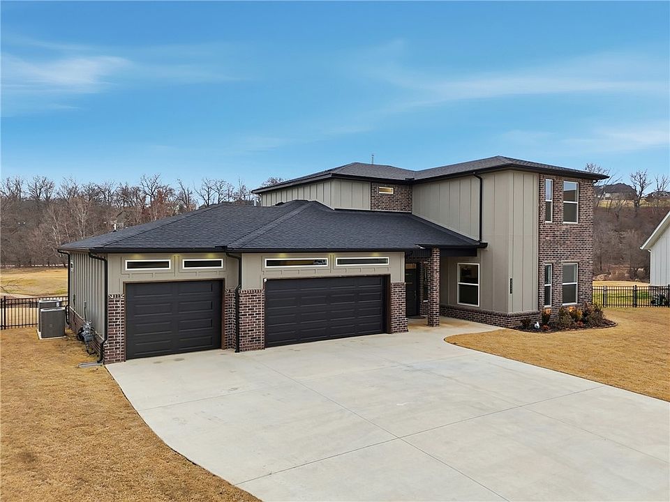 Stylish finishes include luxury vinyl plank flooring, tall ceilings, abundant natural light, and a striking tiled fireplace with an electric insert. Enjoy outdoor living in the fenced backyard overlooking the fairway. Complete with a three-car garage, this home blends modern comfort, scenic views, and unbeatable proximity to Bentonville.