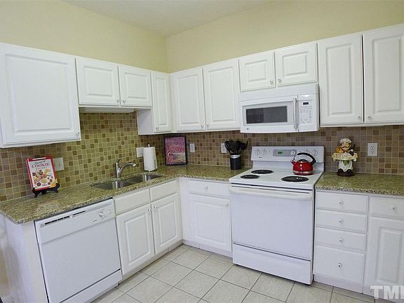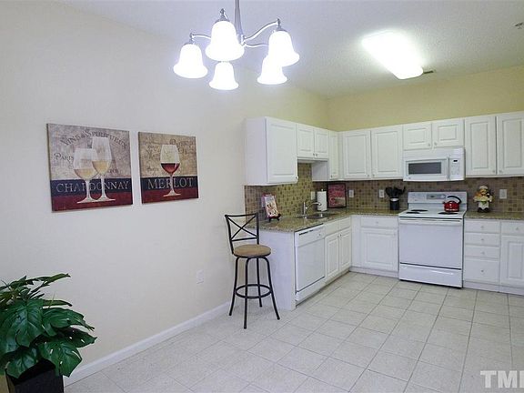 Decorator perfect, with tall ceilings! New granite kitchen counters & specially selected back splash accent the designer sink & top quality faucet. Completely redecorated with new light fixtures, carpet & paint. Spacious living room with decorative fireplace. Large master suite features tub, separate shower & walk-in closet. Sunroom can be a home office. View from all windows. In Brier Creek, close to shopping & restaurants. Community amenities include pool, clubhouse, gym, playgrounds & car care center