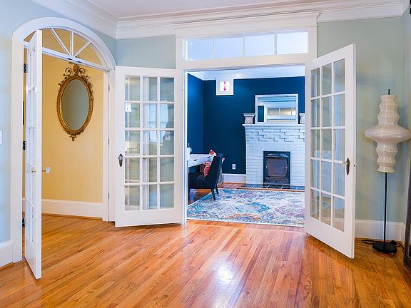 - RoomLivingRoomFeatures: Fireplace, French Doors, Floors-Hardwood, Molding, Books, Recessed Lights