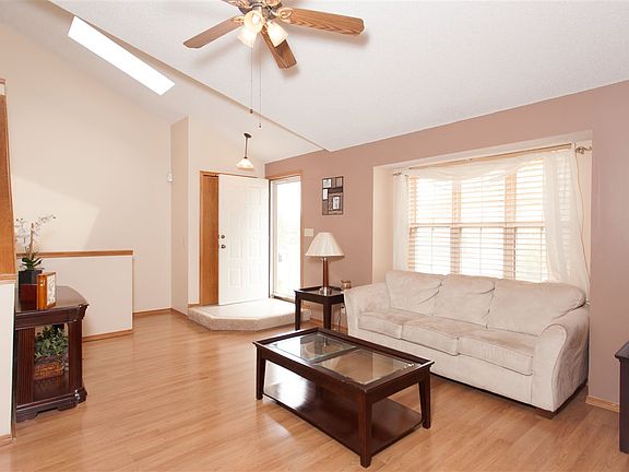 Extremely well maintained, 3 Bedroom 2.5 Bath Home with Full Finished Basement offering a Family Room and Office. Set on a beautiful lot with mature trees and fully fenced backyard with deck. Featuring wood laminate flooring in the open Living Space... boasting vaulted ceilings, skylight and fireplace in the Living Room. Fully Applianced Kitchen will make any Buyer happy! Enjoy updated light fixtures and new carpet throughout. This home is the perfect size for any family!