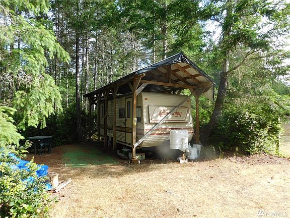 One of a kind RV nest has 10 spaces with electricity hook ups on beautifully forested land next to State Forest land (DNR) with trail access. Includes central shelter with kitchen and rec room, served by huge water storage tank w/pressure system. Includes detached privacy gazebo wired for hot tub with Olympic Mt view and "very high class outhouse". Private location has no identifying signs to this rare outdoor recreation base camp with only a mile from Hood Canal.