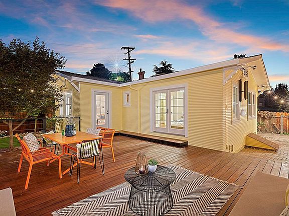 Built in 1920 & situated on a non-thoroughfare street just 2 blocks from Fruitvale Ave.'s Farmer Joe's, La Farine & Peet's, this sensational home has been lovingly renovated/remodeled & is now a striking design showcase from top to bottom w/both vintage & contemporary details & finishes. Every room in this 2BR, 1BA home features custom windows/French doors & new lighting; new mechanicals include roof/electrical/copper plumbing/furnace. Attention to details is unmatched, from the sliding barn door w/stained glass to the repurposed original chimney bricks. The kitchen is spectacular. An expansive teakwood deck (520sf) + hot tub sits next to a willow grove and beautifully landscaped level backyard. Horizontal redwood fencing & a custom decorative iron electronic gate offer privacy & security. A detached garage is now a finished bonus space (243 sf), perfect for a workshop, studio or home office while working remotely. This home is a perfect jewel that must be seen to be appreciated!
