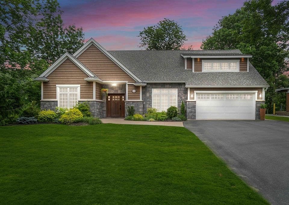 Executive custom bungalow on slab with double car garage and views of Lake William. Walk in to a large foyer, past the bedrooms and full bath, then straight ahead is the breathtaking open concept with tray ceiling and pot lights and custom propane fireplace, patio doors leading to a covered concrete patio, custom kitchen with island, crown moldings throughout, laundry and pantry area. The primary bedroom has large walk-in closet a beautiful walk-in shower and soaker tub. This home features in-floor radiant heat and two ductless heat pumps, electric heat qualifies for time of day billing. Municipal water and peat septic system, lake views, open concept kitchen, dining and living area, granite counter tops, high end kitchen appliances and finishes, center island with copper sink, Farmers kitchen sink, sound system, 9`9` ceilings on main level, propane fireplace, and more!