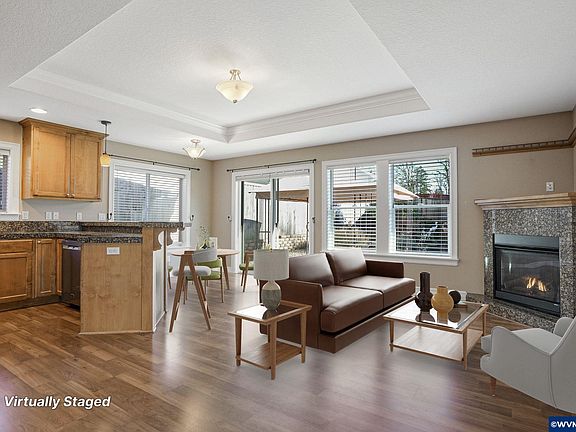 Charming single level home on cul-de-sac in S Salem. Tranquil low maintenance landscaping w patio/canvas gazebo, river rock, flower garden, berries. Year round oasis for birds. Open concept living w laminate flooring, tray ceilings & cozy gas fireplace. Kitchen features, granite counters, eating bar, SS appliances, dbl sink. Primary suite w/ walk-in closet, tray ceilings & ensuite bathroom with dbl sinks & ample storage. Located close to parks, gyms, I-5 & shopping. (interior photos coming soon!)