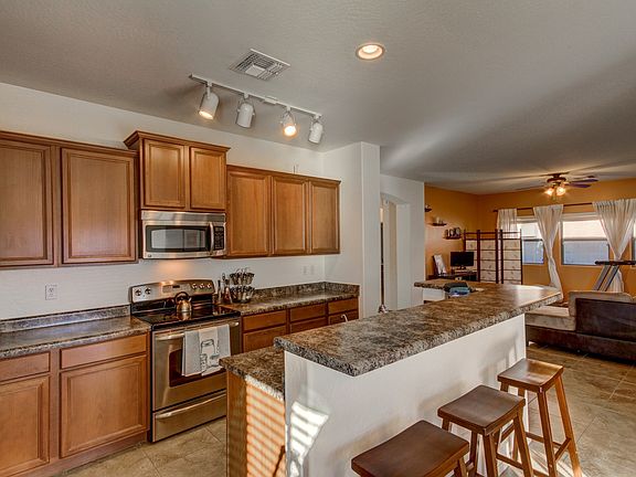 One of a kind single story home in Avondale! Corner lot! Light neutral tile and picture windows throughout. Open concept kitchen has raised breakfast bar, plenty of cabinet space and stainless steel appliances. Large master suite has plush carpet with ceiling fan and picture windows. Full bathroom with double sink vanity and separate soaking tub and shower. Spacious walk in closet! Backyard has covered patio with lush artificial green grass and desert landscaping. Come see your new home today!
