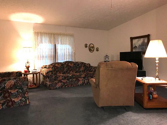 Three bedroom, two bath home with a two car attached garage and sitting on almost nine acres. 1,568 sq. ft. of living space with a split bedroom layout, large master suite, separate dining room, and eat-in kitchen. Exterior amenities include a great location, a newer roof, and a blacktop driveway. Kitchen and laundry appliances available with acceptable offer.