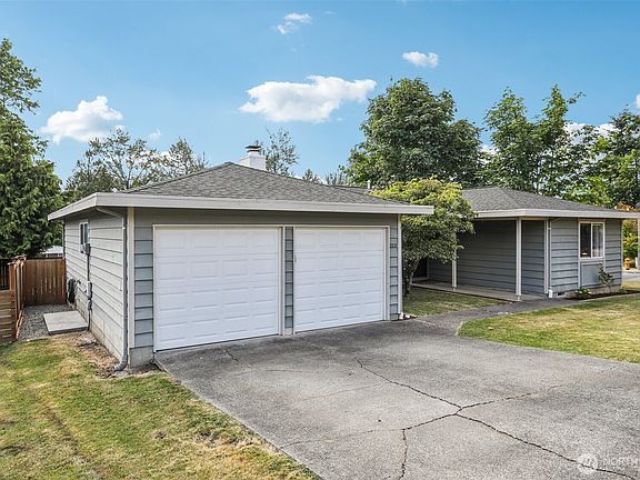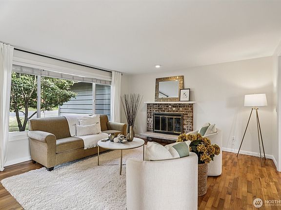Tucked into a peaceful corner lot, this charming rambler offers everyday comfort in a location that connects you to it all. Enjoy territorial views with glimpses of the Valley and Olympics! Oak hardwood floors throughout, with wall to wall carpet in the entertainment room, and a bright, open kitchen with quartz countertops and plenty of storage. Step outside to a fully fenced backyard with a patio and garden space—ideal for relaxing, playing, or entertaining. Just around the corner from Thomas Teasdale Park and close to The Landing, shopping, dining, and major freeways. Move-in ready and thoughtfully maintained, this home is ready for whatever you can envision next!