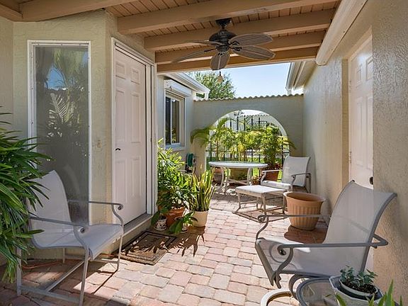 Sunny, bright, sparkling and spacious - this Isles Cove villa has it all and from the moment you enter the friendly outdoor foyer area you'll feel right at home. Tastefully decorated, this unit offers high vaulted ceilings, an open great room floor plan with a large kitchen with updated cabinets, Corian counters, center island and pantry. The spacious lanai is newly renovated with terrazzo floors and offers a calming and peaceful view of a walking bridge, fountain, gazebo and pond. The new sliding windows are secured with electric hurricane shutters for peace of mind and a quick get away. The two car garage has room for a work bench area, plus it has an enclosed 2.5'x22' storage cabinet, and floored and carpeted storage above! There are two bedrooms and a den/third bedroom. Additional features with this villa are skylights to add natural lighting, ceiling fans, and some of the best sail or power boat access in PGI for condo. You will have your own assigned dock #21 which has water and power, plus additional pilings and a boarding ladder. There's a community pool, clubhouse for gatherings, and you're just a few minutes to the Isles Yacht Club and downtown historic Punta Gorda! Once you're here, you will not want to leave! Lanai has separate AC unit which would increase villa's square footage to over 2500.