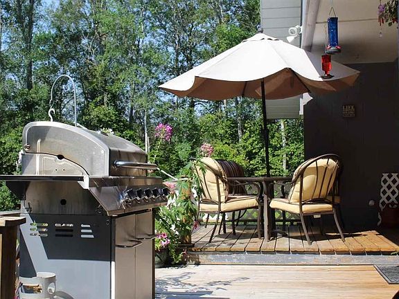 Sweet, neat and complete. This 3 bedroom home sits on over 4 wooded acres with 160 ft of frontage on the Clam River. This well cared for home has had many updates since 2019 which include most windows, three rooms of new flooring, ALL appliances, furnace/central air and water heater. New vanity and toilet in the bathroom, front and storm doors, and they have had the crawlspace professionally encapsulated! Stone wood burning fireplace in living room with sliders out to the deck overlooking nothing but the beauty of nature! Detached pole building used as garage with workshop in the back portion. Small gazebo plus garden shed. The proximity to the river brings in the wildlife. A year round home that would make an awesome, affordable up north get away.