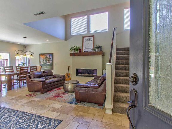 Fabulous home on Azalea Ct! All the touches already completed for you on this wonderfully appointed home on a sweet little cul-de-sac in Las Palmas 2. Stone tile leads you through this redesigned first floor highlighted by a warm linear fireplace and custom workspace perfect as a homework station or craft area. The custom designed kitchen has plenty of stone countertops and tile backsplash! There are newer slow close cabinets and stainless steel appliances along with a perfectly positioned picture window looking out to a well landscaped backyard. Newer top of the line carpeting with memory foam pad adds comfort to the upstairs bedrooms and hallway. Master Suite with large soaking tub, walkin closet and double sinks. Relax on those hot Las Palmas days inside with air conditioning or take a short walk to the pool! The garage has a speckeled epoxy floor which makes it a great mixed use option and storage shelves.There is a convenient dog run on side yard. Great value and move in ready!