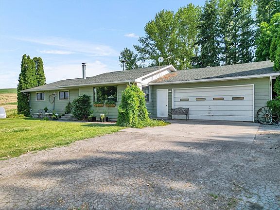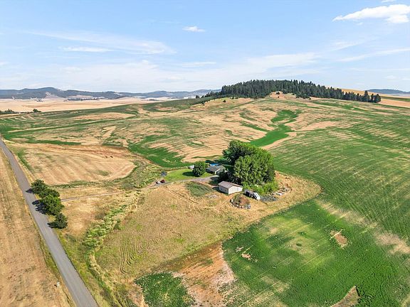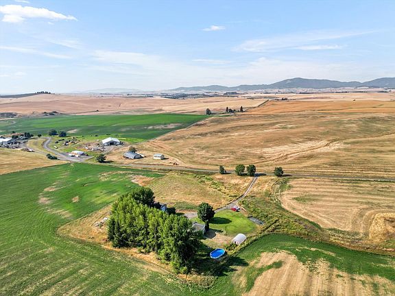 Escape to your dream farmhouse on over 5 acres in the tranquil countryside of Fairfield, WA. This beautifully renovated 2021 home offers modern comforts with rustic charm, including a dream kitchen with a pantry, a farm sink, and gorgeous wood floors. The wrap-around deck is perfect for entertaining, overlooking an above-ground pool, fire pit, and hot tub, all surrounded by stunning mountain views. You'll appreciate the storage and privacy provided by the 30x40 shop, basement workroom, two-car garage, storage shed, and entry gate. For garden enthusiasts, mature blackberry and raspberry bushes are ready to flourish. The main level boasts three bedrooms and two bathrooms, while the spacious basement includes two additional bedrooms (one non-egress), a cozy family room with a bar top and sink, and ample storage. This private oasis, just 30 minutes from Spokane Valley, features modern updates, abundant storage, and plenty of room to play plus, no CC&Rs and underground power lines preserve the natural beauty.