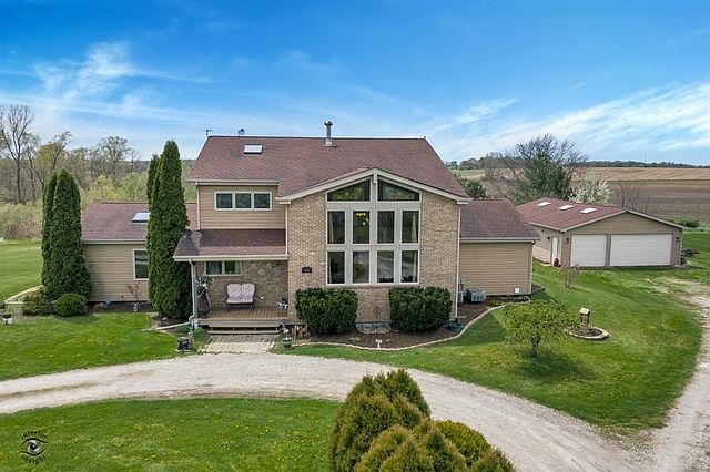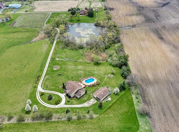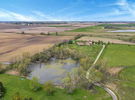 Fall in LOVE with this simply STUNNING custom home on premium 5-acre lot with private 1-acre pond, (40x30) 3-car garage with workshop and (33x18) pool. This home combines simplicity with intricate personality with features that marry the indoors and outdoors through multiple sky lights, soaring ceilings, large windows and a gorgeous sunroom! The home's notable mentions include a welcoming front porch, 3 generously sized bedrooms, tray ceilings, large walk-in pantry, kitchen center island, Jenn-Air convection/conventional oven, R.O. drinking water, wood burning stove in great room, second floor master suite with walk-in closet and a large loft that can be used as an office or second family room. The sunroom features a colorful tropical indoor garden, sky light, hot tub and dry bar with keg fridge and tapper. The pool has a new liner and a (30x20) composite decking as well as a privacy wall. There are many fruit trees: 6 apple, 1 peach, 1 cherry, and 1 pear. You'll also find wild asparagus and raspberries growing on the property! Other attributes include 2 furnaces, 2 central air units (both zoned for efficiency), central vac system, home security system and fire alarm, 400-amp elec service, rough-in-plumbing for additional bath in basement, 9' ceilings in basement, and a whole house water softener. The ready to finish 1,800 sq. foot basement has endless possibilities! Total square footage of this home is 5,580 sq. ft. Property is zoned E-1, which makes it ideal to raise a garden, horses or domestic farm animals. Lincolnway West HS District. Truly one of the prettiest pieces of property in this area!