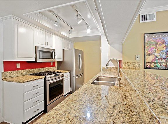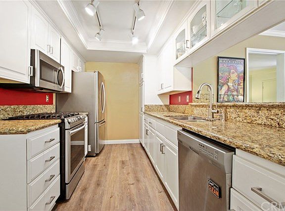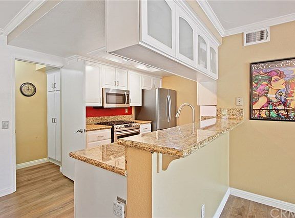 Gorgeous End Unit. Newly Remolded in prestigious community, 2-bed, 2-bath (Dual master suites). Spacious living/dining, with newer luxury vinyl plank flooring throughout, with 3.5 inch baseboard. Open floor plan which leads to a large, serene & upgraded patio with stone flooring, and sprinkler system, perfect for BBQ and entertainment. Upgraded Gourmet kitchen with granite counters, Newer lighting fixtures, newer sink, plumbing fixtures, and breakfast bar, well appointed with newer stainless steel appliances, neutral paint and plenty of upgraded storage cabinets which opens to dining and living area. The roomy master bedroom features a walk-in closet, linen cabinet for added storage and door to the patio. Upgraded master bath tastefully remolded with new vanity, toilet, designer cabinets, sink, plumbing and lighting fixtures. The secondary bedroom is generously sized and features a large designer closet, access to the patio and is adjacent to the fully, newly remodel walk in shower, new sink / cabinet, light fixture, new faucet, medicine cabinet, and de-humidifier. Newer AC. Large laundry room, with lots of storage cabinets. One-car garage with direct access & full driveway. HOA pool and spa are just a few steps away. Situated next to exquisite Serrano Park homes with walking trails, greenbelts, remodel Tamarisk Park, few miles from the Irvine Spectrum, shops, beaches, Fwy & schools. Don't miss out!!