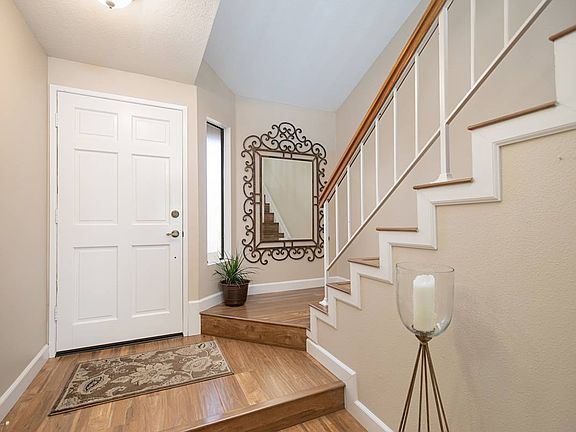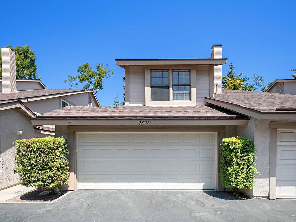 Welcome Home! Just beyond your own private court yard you find this beautiful dual-master, 2 bedroom, 2.5 bathroom, 2 story townhome. This bright and open home features soaring high ceilings, large windows with custom plantation shutters, an elegant granite fireplace, and beautiful laminate wood floors through-out. There is a separate breakfast nook inside this oversized kitchen with newly updated appliances. You have space for a formal dining room - or creatively use the space as you wish. Both master bedrooms have en-suite bathrooms for extra privacy. Enjoy the luxurious separate dressing area, newly updated double-sink vanity, and two closets in the primary master bedroom. Guests can access the convenient first-floor powder room located adjacent to the gorgeous formal entry. Tons of storage in the two-car garage as well as the laundry area. The back patio is spacious - featuring several raised planters, space for a table to dine under the stars. The patio is private and looks out onto the hillside and trees behind the home. Community amenities offer pool, spa and clubhouse for lots of outdoor fun! Private tours only! Contact us to come see your Next Home!