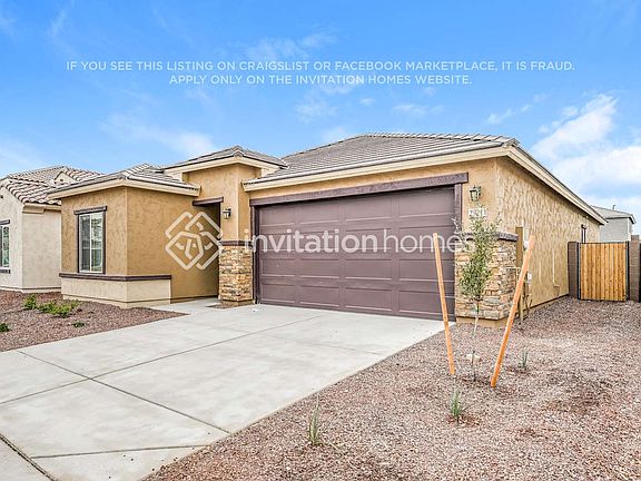 Lease this home and get more from Invitation Homes professional property management. This home comes fully loaded with quality amenities, must-have services, high-end tech and 24/7 emergency maintenance. Your estimated total monthly payment is $2079.90. That covers your base rent, $2060.00 + our required services designed to make your life easier: Air filter delivery $9.95 and Utility management $9.95. We've built value into your lease with ProCare it's free! Our team of qualified professionals will take care of your home maintenance while you focus on the things that matter. And you get access to our exclusive resident offers with discounts to some of our favorite brands. Apply for select homes by 1/24 to get your first full month of base rent free. *Base rent does not include the Lease Easy Bundle (itemized), the internet package and any other optional fees, like pet rent, you may opt in to. This home is part of Copper Falls, a thoughtfully planned community. Learn More about what Copper Falls has to offer. Copper Falls offers newly built 3 and 4-bedroom homes for rent in the West Valley, blending modern living with community charm. Each home features granite countertops, stainless steel appliances and a private, fenced yard, perfect for pets. Residents enjoy access to two neighborhood parks, a greenbelt with trails, a playground, a basketball court and picnic areas. Located in scenic Buckeye, you'll enjoy outdoor adventures at White Tank Mountains, and shopping and dining at Sundance Towne Center. At Invitation Homes, we offer pet-friendly, yard-having homes for lease with Smart Home technology in awesome neighborhoods across the country. Live in a great house without the headache and long-term commitment of owning. Discover your dream home with Invitation Homes. Our Lease Easy bundle which includes Smart Home, Air Filter Delivery, and Utilities Management is a key part of your worry-free leasing lifestyle. These services are required by your lease at an additional monthly cost. Monthly fees for pets and pools may also apply. Home Features and Amenities: Air Conditioning, Fenced Yard, Garage, Granite Countertops, Kitchen Island, Long Lease Terms, New Construction, Open Floorplan, Patio, Pet Friendly, Primary Bedroom on Main, Recessed Lighting, Single Story House, Smart Home, Stainless Steel Appliances, Tile, Washer & Dryer, and professionally managed by Invitation Homes. Neighborhood Features and Amenities: Basketball Court, Park, Playground Invitation Homes is an equal housing lessor under the FHA. Applicable local, state and federal laws may apply. Additional terms and conditions apply. This listing is not an offer to rent. You must submit additional information including an application to rent and an application fee. All leasing information is believed to be accurate, but changes may have occurred since photographs were taken and square footage is estimated. Furthermore, prices and dates may change without notice. See InvitationHomes website for more information. Beware of scams: Employees of Invitation Homes will never ask you for your username and password. Invitation Homes does not advertise on Craigslist, Social Serve, etc. We own our homes; there are no private owners. All funds to lease with Invitation Homes are paid directly through our website, never through wire transfer or payment app like Zelle, Pay Pal, or Cash App. For more info, please submit an inquiry for this home. Applications are subject to our qualification requirements. Additional terms and conditions apply. CONSENT TO CALLS & TEXT MESSAGING: By entering your contact information, you expressly consent to receive emails, calls, and text messages from Invitation Homes including by autodialer, prerecorded or artificial voice and including marketing communications. Msg & Data rates may apply. You also agree to our Terms of Use and our Privacy Policy.