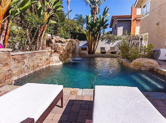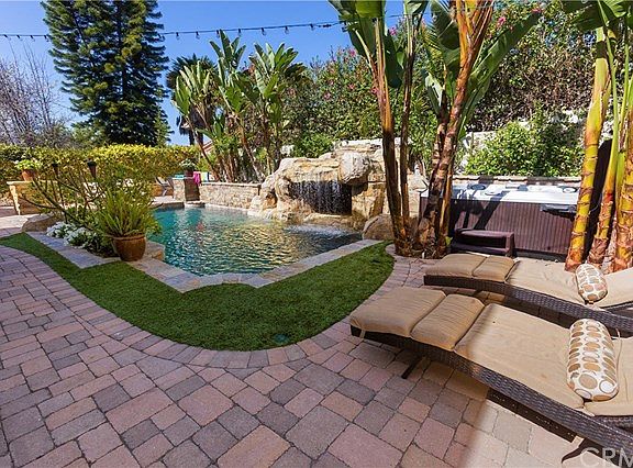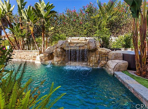 HOT NEW LISTING! OASIS RESORT-STYLE INDOOR and OUTDOOR LIVING. Listen...to the quiet and the trilling and cooing of birds and the splashing of waterfalls against the rock and grotto areas of a gorgeous pool. Too much for words to describe the living and joy of this home....but, let's try: Beautifully remodeled, over 3,100 s.f. home on over 6,200 s.f. lot professionally staged to show off four spacious bedrooms and huge bonus room. Sliders and French windows downstairs opening onto lovely entertaining to backyard paradise with a seating area near a gas "fire and ice" in-ground area. Pavers, artificial turf, lush and mature tropical planting surrounding rock pool and above-ground 6-person spa with lounge seat. Light and bright, flowing interior includes formal dining and living rooms, step-down meditation area and fireplace. Large kitchen area with island, SS appliances, Subway tile back splash open to family room with custom fireplace. Master en suite with vaulted ceilings, balcony and retreat with fireplace - bath suite with jetted tub and steam shower. Huge bonus room/flex space with wet bar and a bank of storage and shelving. Three-car garage with lots of built-in storage and currently one bay used as a separate workroom/flex space. Close to California Distinguished schools, Serrano Creek Park and Lake Forest Sun and Sail Club amenities with pools and spa, tennis courts, club house -- the pride of Lake Forest. Smart technologies, SOLAR, 50-yr ROOF. NO Mello-Roos. So much more! Come see!