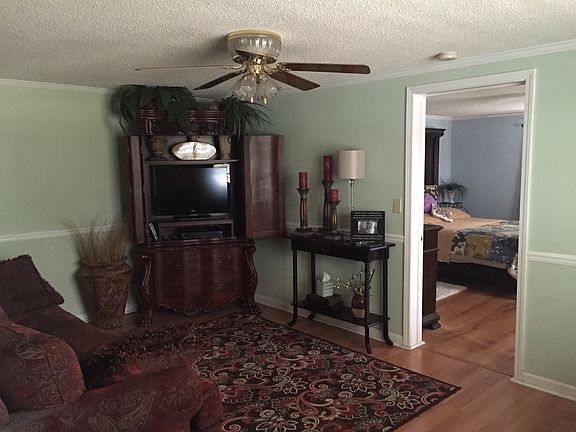 Move-in ready Metal roof 2 large bedrooms, 2 baths Living room, dining room, kitchen has custom built cabinets (all appliances remain in home), laundry room, front porch, back deck, detached 2 car garage, storage building Sits on 1.25 acres of land