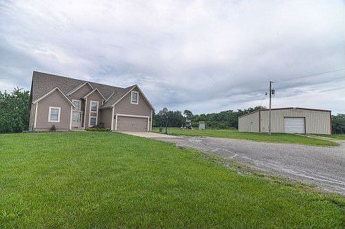 View website: http://25219sheltroad.IsNowOffered.com - NICE 4+ BEDROOM, 3.5 BATH HOME with a lot to offer, on 19+ acres, trees, pastures. Measurements are not exact, some offsets. Huge family room w/walkout basement, den or office. Check out the 40x60 insulated shop, w/concrete floor, 10' and 12' doors, electric, 14' side walls. Propane heater, car lift will stay. Property could be sold on approx. 38.8