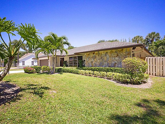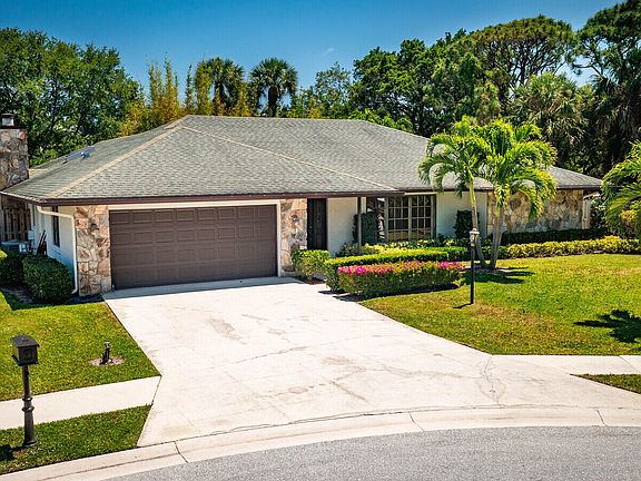 Nestled within the prestigious Frenchmen's Landing community in Palm Beach Gardens, this custom-built CBS home epitomizes luxury living. Upon entry, guests are greeted by a grand formal living area featuring a picturesque bay window adorned with elegant plantation shutters, complemented by a spacious dining room & inviting foyer. The heart of the home lies in its expansive kitchen and family room, boasting soaring vaulted cedar ceilings & a striking stone-faced fireplace, creating a warm and inviting ambiance. Adjacent to the kitchen, a convenient half bath & an expansive laundry room provide practicality and ease of living. The well-designed split floor plan offers three bedrooms on one side, along with a full cabana bath seamlessly connecting to the patio and pool area, ideal for outdoor entertainment. Meanwhile, the master bedroom, discreetly located for privacy, offers a generous retreat complete with walk-in closets, providing ample storage space for wardrobe essentials. The true highlight of this residence is its spectacular pool and patio area, enhanced by four sets of pocket sliding doors that effortlessly merge indoor and outdoor spaces, allowing for seamless transitions and an abundance of natural light. With its enviable southeast-east facing orientation, the home is bathed in morning sun, creating a tropical oasis perfect for relaxation or hosting gatherings. This residence presents a rare opportunity to experience the epitome of Florida living, combining elegance, functionality, and comfort in every detail.