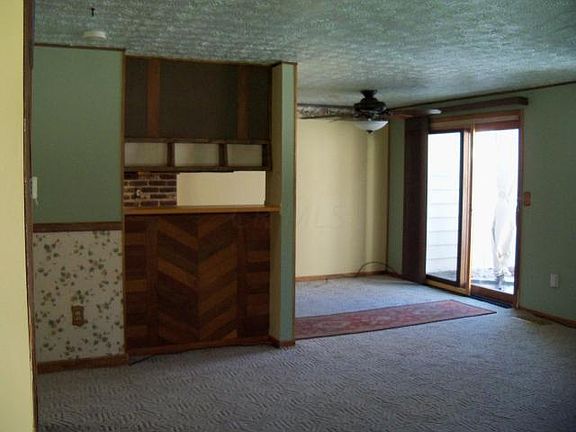 Ranch style rarely available. Great location facing the wooded area. Beautiful landscaping and trees - even deer sightings regularly! Open living room and eating area. New quality sliding glass door out to the private patio and storage room. New front storm door. Newer furn & central air.Walking paths/sidewalks around the complex.Extra deep detached garage.