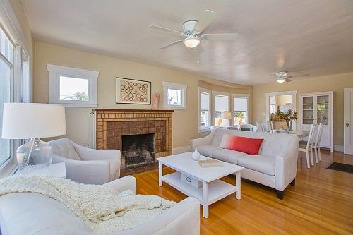 20s Bungalow with a Calistoga Spa-like Feel on Private Alameda East-End Cul-de-Sac The simplicity of its fresh white exterior and interior with hardwood floors throughout, built-in china cabinet and original trim are charming and inviting. The open living room and dining room with windows facing east make it exceptionally airy and private. Resting at the end of the street with a long driveway there is plenty of off street parking with access to the backyard.