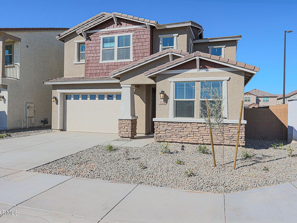 Beautiful Brand New 4 bed,3 bath Home! Never Been lived in home in desirable gated community of Bellamy. 1BR & full BA on 1st floor; great room, customized tile floor downstairs, stainless appliances, lots of cabinet space, large island with granite countertop. Master BR plus 2 large BR on 2nd floor. The stunning master bedroom boasts a private bath with double sinks, as well as a spacious walk-in closet for all your belongings. Also including a cozy backyard with a covered patio and tons of potential for customization, this is sure to be the home for you. Great location near 202 freeway, Schools, San Tan Mall, Costco, restaurants, movie theater & Gilbert Mercy Hospital.