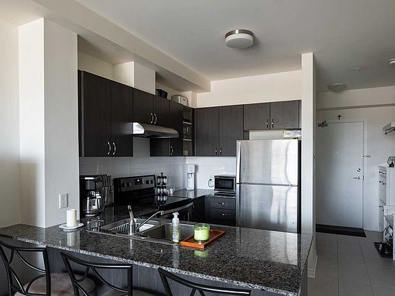 ** Almost New At The Visto Condos **, This 473 Sq Ft. Unit Has A Functional Floor Plan And A Private Sleep Area W/Closet That Functions As A Bedroom. 9 Ft Ceilings, Upgraded Laminate, Kitchen Cabinets, Granite Counters, Pot Lights, Custom Blinds, Close To Shopping Centers, Schools, Parks, Restaurants, Hwy 400 And 401. 1 Underground Parking & 1 Locker. Best Value In The Area.