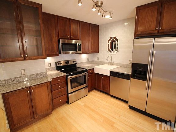 Beautiful updated townhome in great location! 5 min to downtown, close to North Hills, across the street from a 30 acre park & greenway. Kitchen features granite counters, farm sink, tile backsplash, stainless steel appliances & upgraded 42" cabinets! Bamboo flooring downstairs & marble bath floors. Spacious master bath with double sink vanity. Enjoy private back deck & patio. Washer/dryer incl. No smoking. Pets negotiable. Maintenance free & professionally managed.