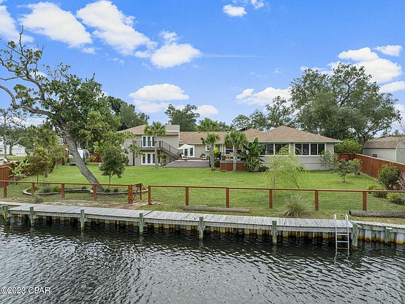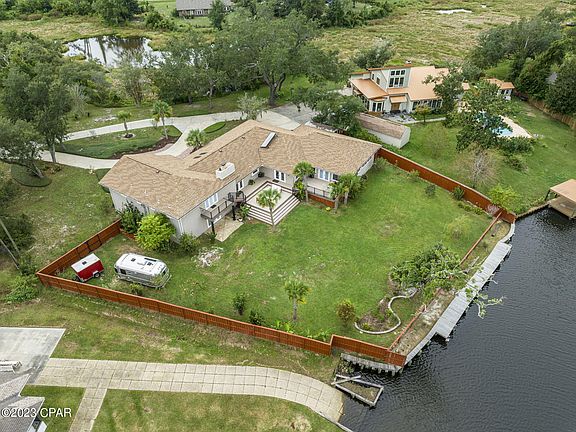 PRICE IMPROVEMENT on this Perfectly situated home on an half acre, arguably the most beautiful waterfront lot, in the highly sought-after Pretty Bayou. - Indoor Pool and Sauna, and 107 Feet of waterfront with Gulf access. Over 5,000 sq feet, 6 bedrooms, 4.5 Bathrooms, this home has Two true Primary bedrooms each with full bathrooms. One opens to the Indoor heated Pool, the other opens to it's own balcony overlooking Pretty Bayou. The Living room has been nicely updated fresh paint, wood look tile floors, and shiplap fireplace, the kitchen has tons of storage, an oversized breakfast area and formal dining, perfect for large gatherings. Home has multi HVAC units for your comfort, Water heater replaced in '22, and home is equipped with it's own Culligan water purification system. The interior is immaculately maintained. The backyard has plenty of room for an additional pool outside if that's on your must have list. Home is 30 Minutes to the Airport, and 15 minutes to the sandy beaches of Panama City Beach. Must see in person to appreciate all this home has to offer. SELLER IS MOTIVATED and many inspections have already been completed. Schedule your private showing today.