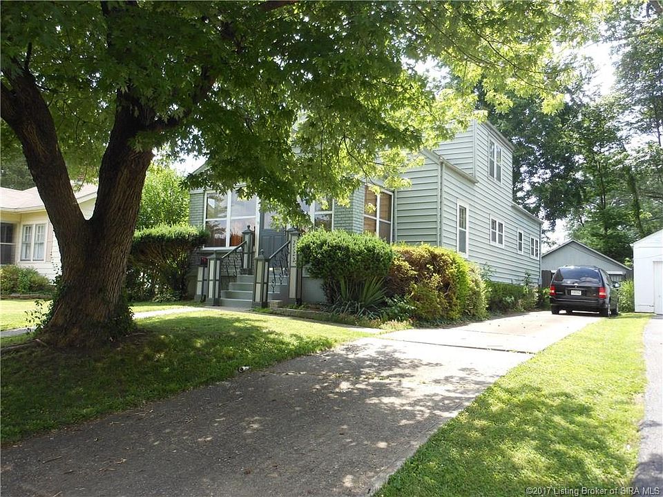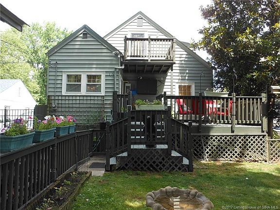 Welcome to one of the most charming & unique areas in New Albany. This Spring Avenue home is full of character. The upstairs has a full bath, bedroom, living room, fully equipped kitchen w/island & private deck. This could be a master suite, mother in law suite, or apt for a student. Enjoy beautiful hardwood floors made of oak & fir. Main kitchen offers custom built in oak nook pews w/copper inlay & storage. Lovely coiffure ceilings in living room & bedroom. Relax on your enclosed front porch or enjoy the partially covered large deck w/built in gardening center. Fenced back yard very private. Roof, furnace, ac, & water heater approx 7 yrs old. Exterior paint completely removed & painted 8 years ago. New paint on deck and front steps. Ceilings redone with unique designs. Sellers leaving custom window treatments, appliances, & kitchen table/chairs. Finished basement offers 4th bedroom (non conforming). Schedule a private showing today to see the details throughout. All inspections welcomed. Price reflects home being sold as is.