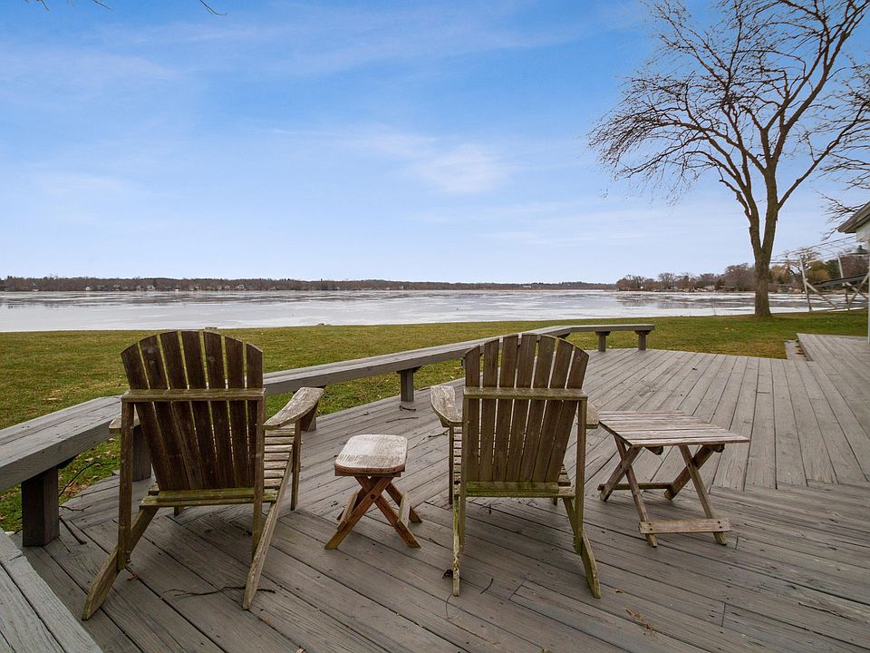 Stunning panoramic views are yours in this 4 bedroom 2.5 bath Lake Elizabeth lakefront home. Level frontage with large yard. Located on a quiet cul-de sac. An open concept main level with lake views, gas fireplace and several seating areas offer a great space to gather with family and friends. Relax in the four-season room that leads out to a large wrap around deck overlooking the lake. A new powder room was just completed on the main level. New siding is composite for low maintenance. Large attached garage for all your lake toys. Lake Elizabeth is an all sport, spring fed lake minutes from Wilmot Mt (Vail Resorts) and Lake Geneva. Property is part of an estate and is priced aggressively for quick sale. Very low price for large lake frontage w great views. $148,000 BELOW ASSESSMENT