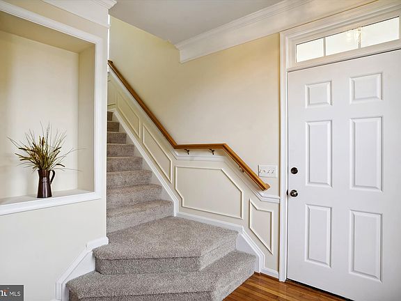 Bright & Sunny*Spacious luxury end unit townhome backing to mature trees offers a three-level bump out! Enter the foyer with wood flooring to formal living and dining rooms featuring beautiful crown molding, chair railing and soaring ceilings. The large kitchen includes an extended island with double sink, bump out to eating area with views of mature trees and bonus den area. Sliding door to deck off the kitchen. Freshly Painted & New Carpeting! Three bedrooms on upper level with spacious primary bedroom which includes tray ceiling, walk-in closet and attached bathroom. The primary bathroom includes a soaking tub and separate shower. Upper-level washer and dryer conveys. Wonderful lower-level family room with gas fireplace, separate sound room and full bathroom. Extra storage room. Sliding door to back yard. The ROOF is 2 years old with a 50-year warranty, gutter guards added, gas hot water heater 2022, dishwasher is one year old. Manor Oaks has a community pool, tot lot, tennis courts and walking path!
