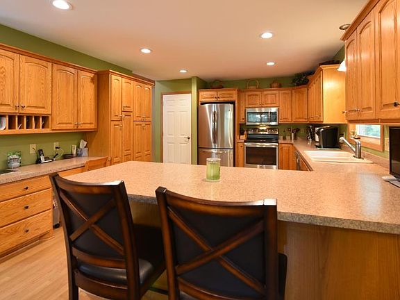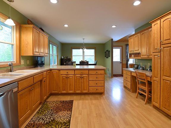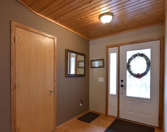 Park-like setting on 3.44 acres. Home features one-level living, 3 bedrooms, 3 bathrooms with full partially finished basement newer home. In-floor heat in basement and main level. Beautiful landscaping, circular drive, treed acreage, huge deck, private master suite, open floor plan, living room with tongue and groove ceilings and heated garage. Ready for showings!