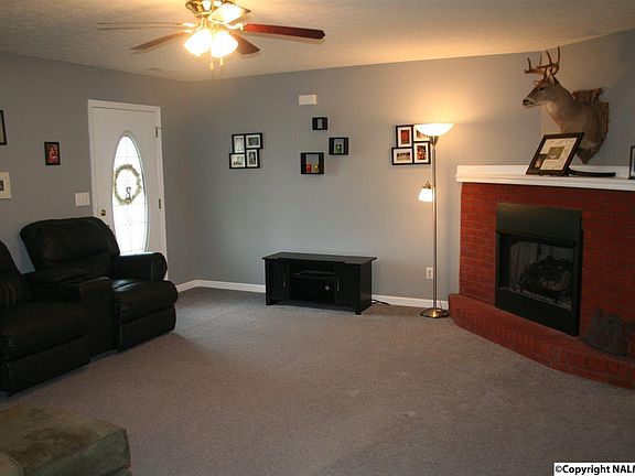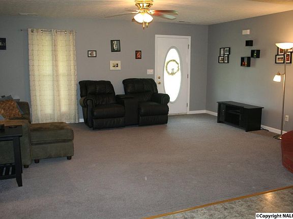 For more information Call or text Kim Hodges 256-777-3375Crye-Leike Realtors. This home sits on 2.44 acres and has lots to offer. 1450 Sq. Ft. home with an open floor plan, 3 bedrooms and 2 full baths.The Master Bedroom is isolated from the other two bedrooms. The Master bathroom has a large walk-in closet and double vanity. The kitchen has lots of cabinets and a breakfast bar. The living room has a gas log fireplace. The two car carport is attached at the rear of the house and comes into the laundry room/mud room. Bring your horse the land can be fenced for pasture.
