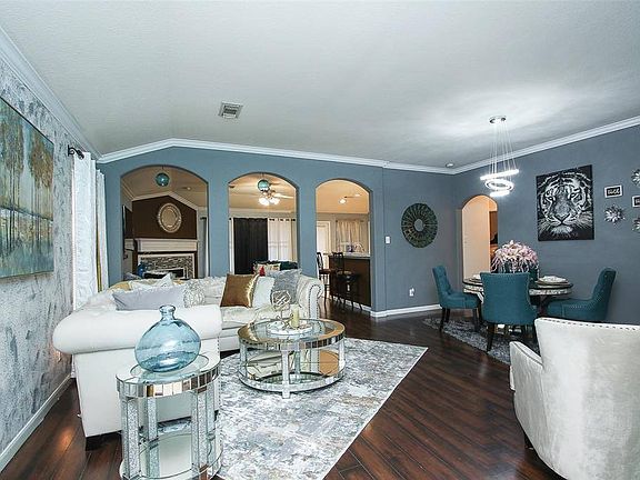 Gorgeous single story home in Breckenridge Forest! Features include tall ceilings, open floor plan, recent interior paint, laminate floors and/or tile throughout, no carpet. Spacious living/dining combo with archways that open into the large family room with corner fireplace and vaulted ceilings, large kitchen with new counters, breakfast bar and breakfast area. Backyard includes covered wood deck patio that is perfect for family gatherings. Schedule your appointment today! NO FLOODING.